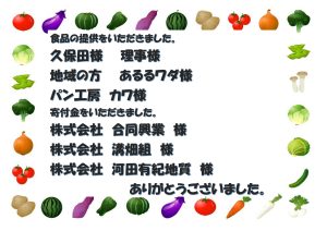 食材の提供・寄付金などで