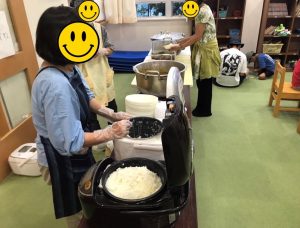 今回は、学童クラブのこどもまつり内でポッポ食堂を開催しました。