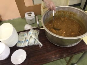 メニューはカレーライスだけだったのですが、おまつりで販売している食べ物を持ち込んだり、おまつりの遊びコーナーをまわったりして、ポッポ食堂&こどもまつりを、みなさん楽しんでくれていたと思います。