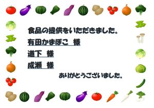 食品の提供していただいた方、ありがとうございました。