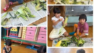 給食に使うとうもろこしの皮をジャンプ組さんがむいてくれました😊 少し皮はかたかったけど、上手にヒゲも全部取ってくれました😄 とうもろこしは苦手な子もいたけど甘くてとっても美味しかったよ😋🌽