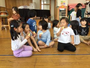 剥いたリンゴは、すぐにみんなでおいしくいただきました。