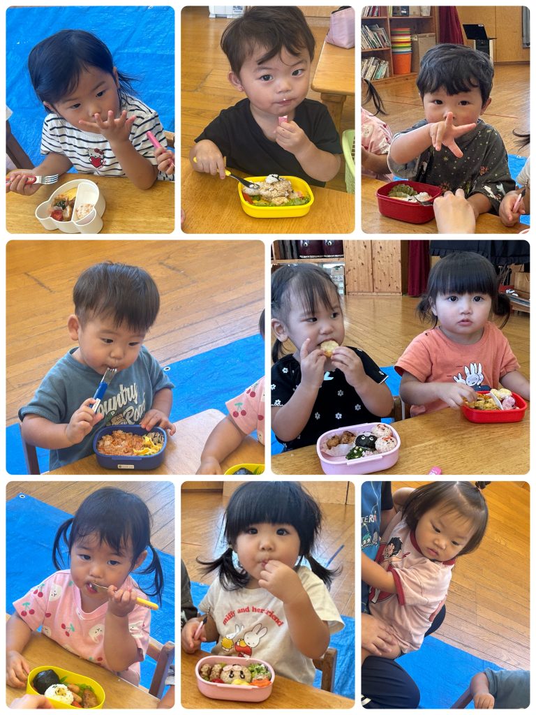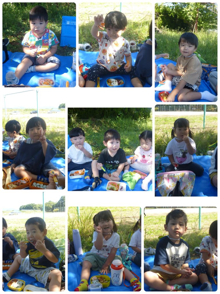 乳児組は、歩いてお散歩したり、どんぐりを見つけたりトンボのおもちゃを作って飛ばしたりして遊んだよ😊お弁当は保育園で食べたよ