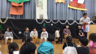 12月生まれの子の誕生日会をしました。 今月は7人の子どもたちが誕生日を迎えて みんなにお祝いしてもらいました。 みんなで写真をパシャリ!! 今回の担当は ほのか先生 びっくり飛び出すお化けや 動物、ハートなど 子どもた … 続きを読む 12月生まれの誕生日会🎂