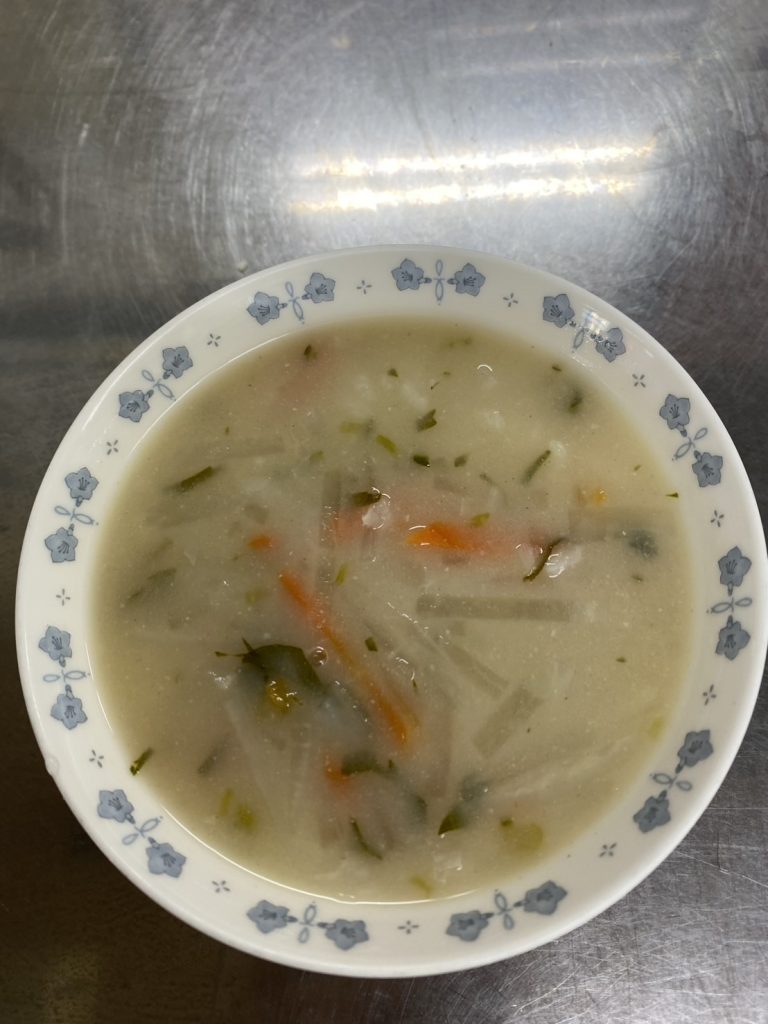 保育園では味噌味の七草がゆを作ります。保育園では人気のおやつです!