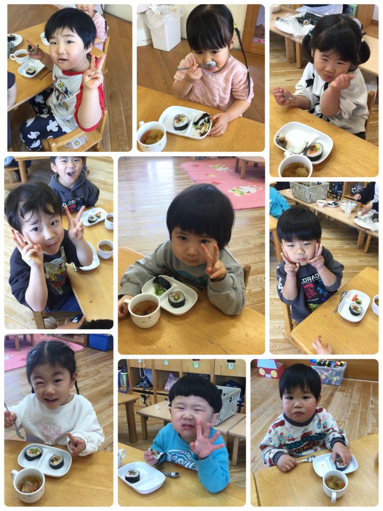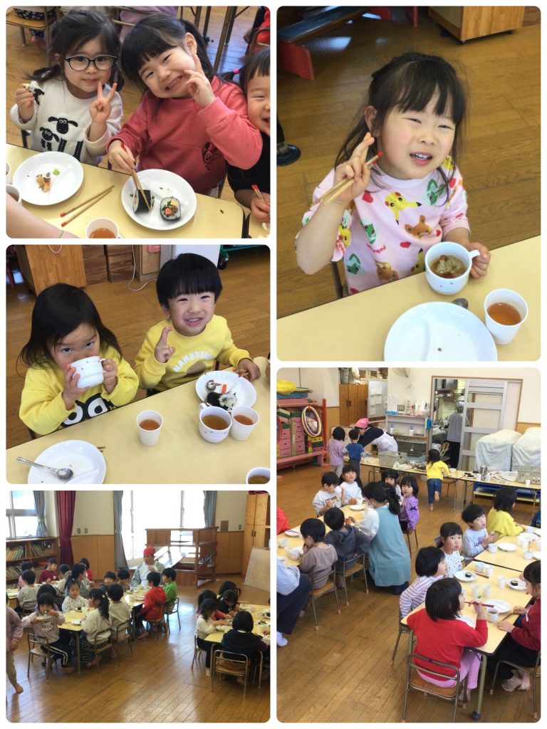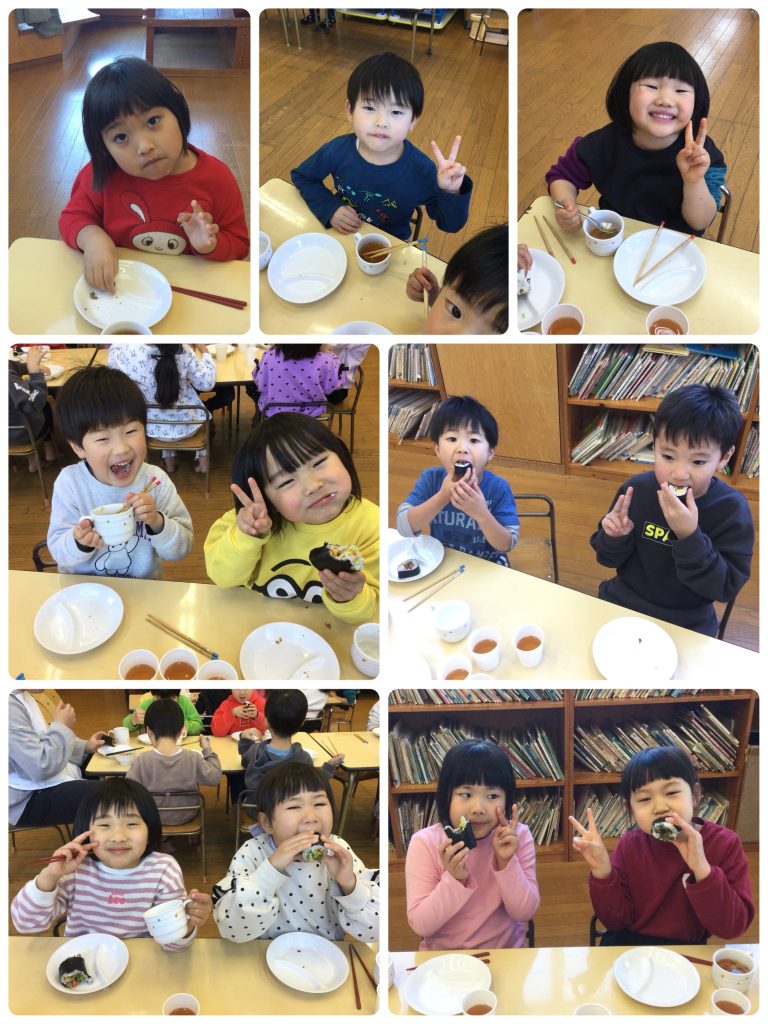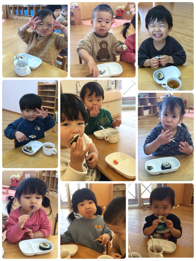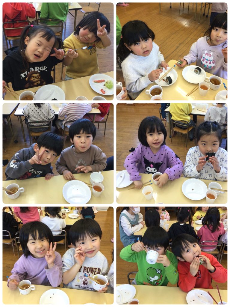 子どもたちはだまって南南東を向いて恵方巻きをたべていました😊✨寿司は子どもたちに大人気でした✨