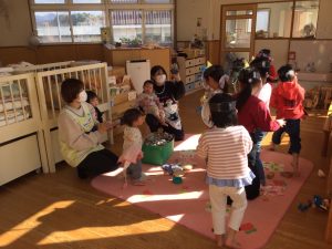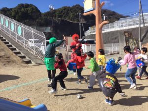 集いの後は、ジャンプ組が鬼になって乳児組の子どもたちの