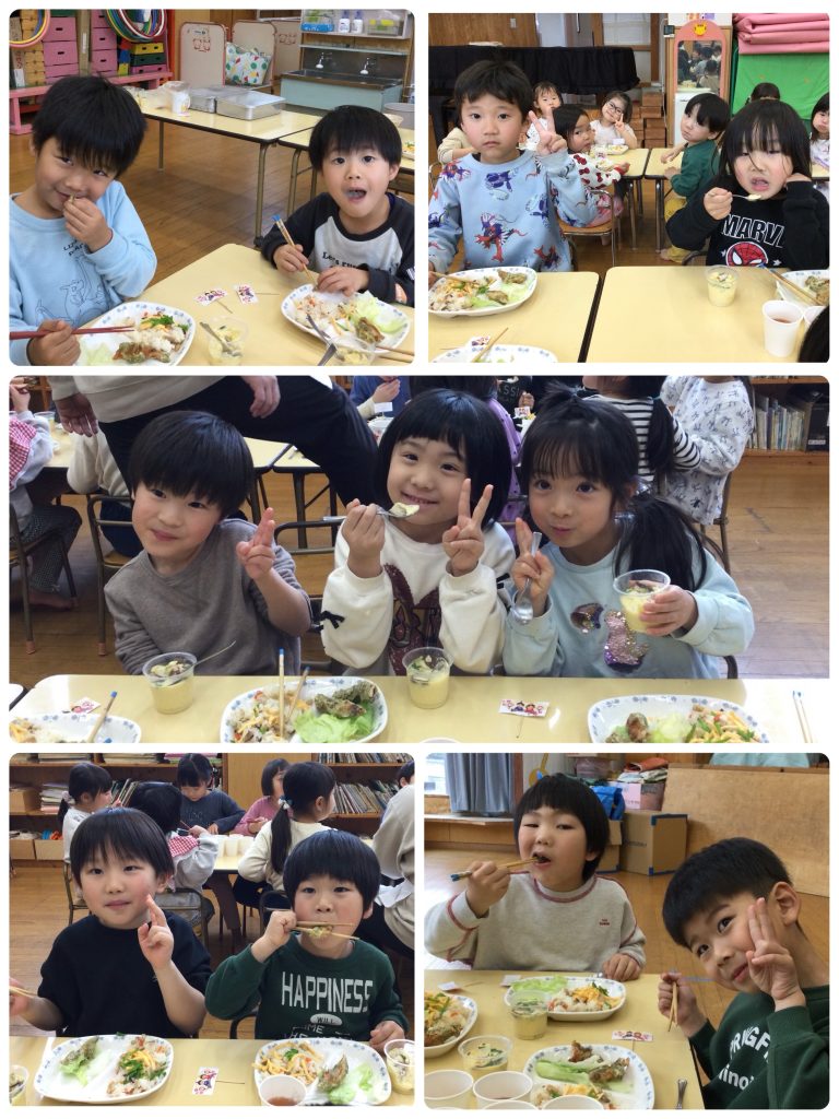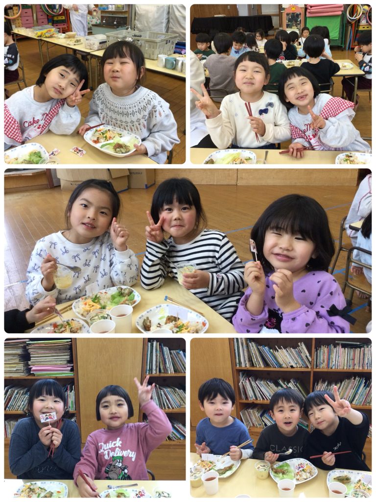 2026年3月6日 / 最終更新日時 : 2026年3月6日 poppoen 給食室 ひな祭り🎎 3月3日はひな祭り🎎 保育園では給食のひな祭りメニューを食べてお祝いしました。 (メニュー) ちらし寿司、磯辺揚げ、茶碗蒸し、添え野菜、ミニゼリー (おやつ) 牛乳 苺大福🍓 みんなで食べて楽しかったね♪🥰